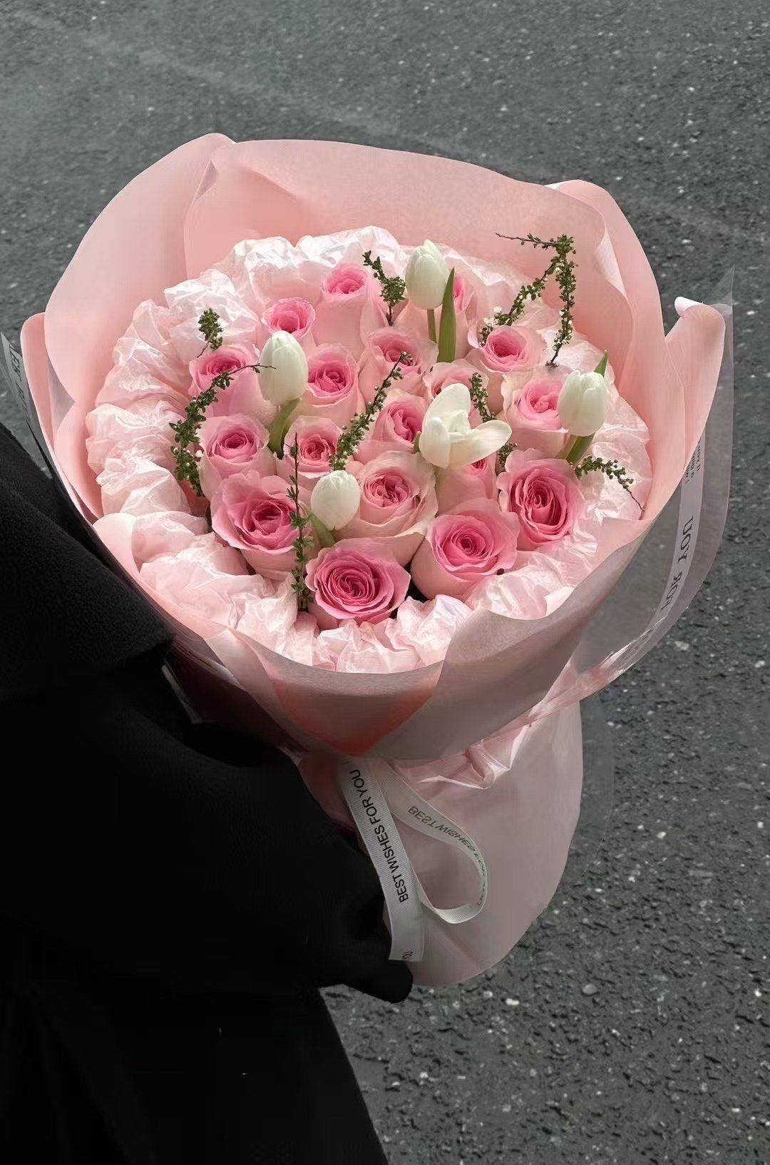 【花遇和风】生日花束粉玫瑰混搭郁金香花束
