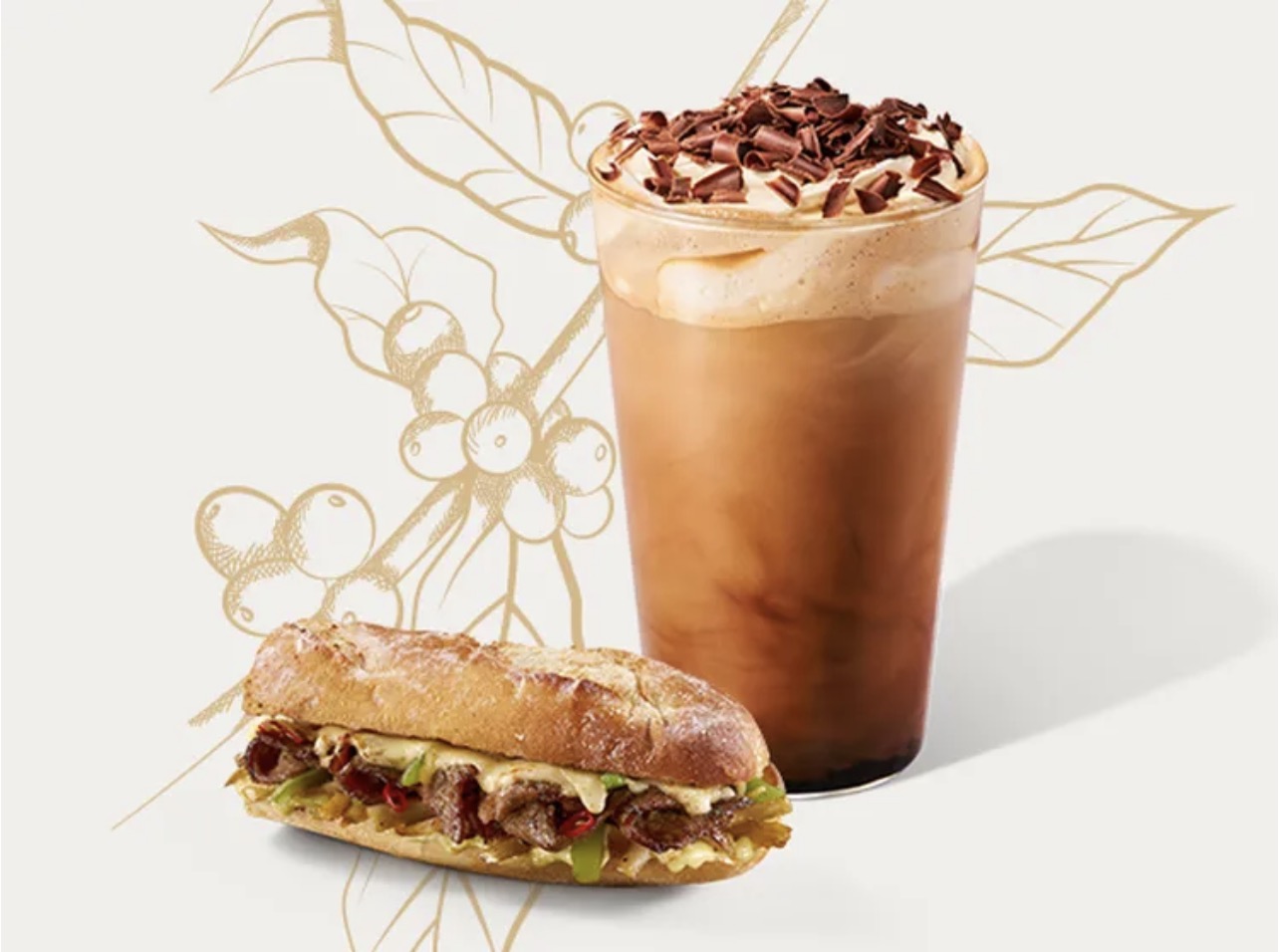 热比利时黑巧乳酪拿铁(大杯)+川香牛肉法棍三明治