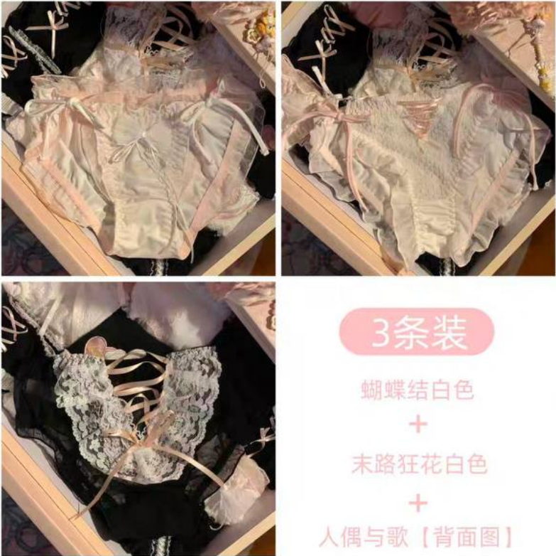 Celot Kever法式复古天使少女玫瑰绸面纯欲舒适爱心珠光三角内裤